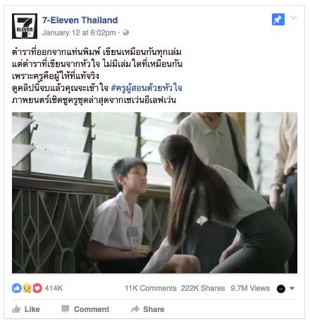 หากพูดถึงคลิปไวรัลที่มาแรงที่สุดในช่วง 3-4วันมานี้ คงไม่พ้น โฆษณาสุดซึ้งที่เล่าถึงความมานะอดทนของแม่พิมพ์ของชาติอย่างคุณครู ในโฆษณาชุด “เชิดชูครูผู้สอนด้วยหัวใจ” (From The Heart) ของ 7-11 (7 Eleven) เซเว่นอีเลฟเว่น ร้านสะดวกซื้อชื่อดังของไทย