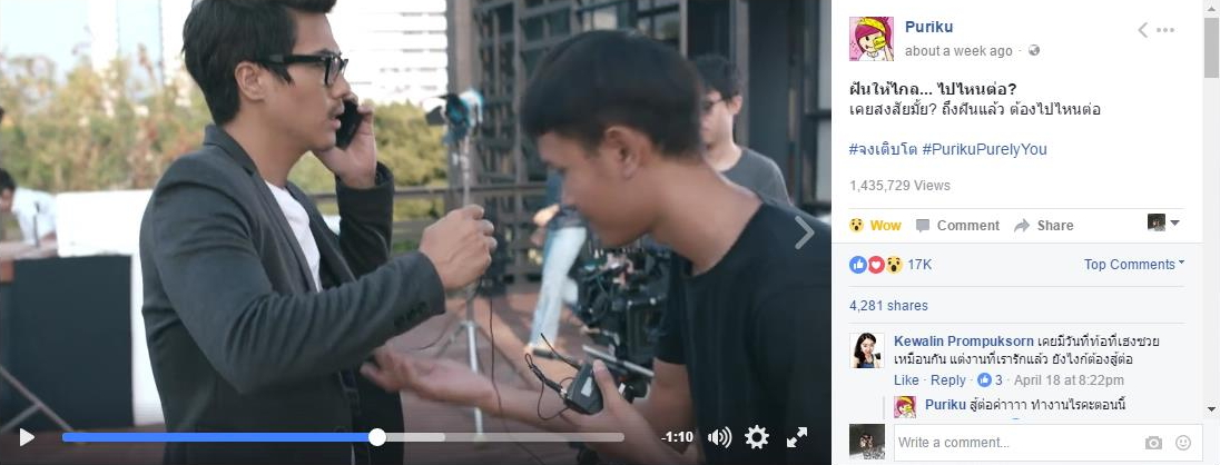 ติดเกาะกระแสในโลกโซเซียลในเดือนเมษายนที่ผ่านมา แฮชแท็กร้อน ๆ ที่มีความเคลื่อนไหวไม่เหมือนใคร กล้าที่จะเล่น กล้าที่จะแตกต่างให้กับตลาดชาพร้อมดื่ม อย่างแบรนด์เพียวริคุ นำร่องด้วยการปล่อย ไวรัลคลิป เมื่อต้นปี อย่าง Purely You #จงชอบตัวเอง ที่ได้รับการตอบรับที่ดีจากเหล่าวัยรุ่นบนโลกออนไลน์