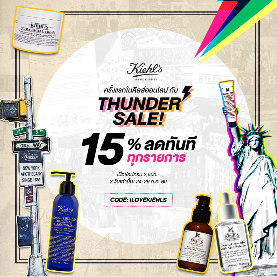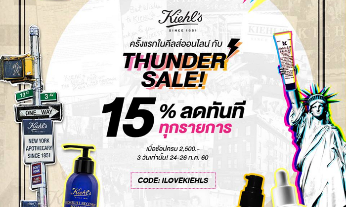 Kiehl’s Since 1851 ผู้ผลิตและจำหน่ายผลิตภัณฑ์ดูแลผิวพรรณและเส้นผมคุณภาพเยี่ยม แบรนด์เก่าแก่จากนิวยอร์ก และได้รับการยอมรับจากลูกค้าทั่วโลกในคุณภาพมากว่า 166 ปี จัดโปรโมชั่นพิเศษ Kiehl’s Thunder Sale สำหรับคนรักคีลส์ มอบส่วนลด 15% สำหรับสินค้าทุกรายการ เมื่อช้อปสินค้าครบ 2,500 บาท ง่ายๆเพียงใส่โค้ด ILOVEKIEHLS