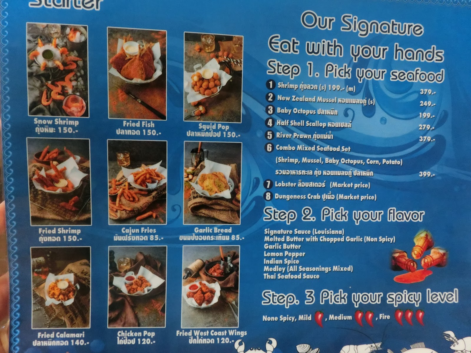 มีให้เลือกตั้ง 7 ซอสแน่ะ ใครเป็นขาเครื่องเทศนี่ฟินกันไปเลยอ่ะ เพราะซอสดูครบเครื่องสุดๆ มาแนว เครื่องเทศแบบ Cajun มีทั้งแบบ Signature Sauce (สไตล์ Louisiana แท้ๆ) Lemon Pepper ,แบบไม่เผ็ด,ซอสกระเทียม หรือซอสแบบไทยๆก็มี