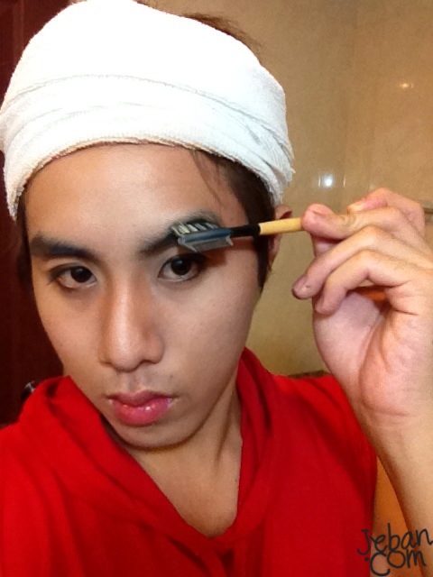 ต่อมาเราจะมาแต่งคิ้วให้ได้รูปทรงกันหน่อยด้วยแปรงปัดคิ้วของ OP ออกด้านๆ ซึ่งรู้งี้ซื้อบิวตี้บุฟเฟต์ดีกว่าเหอๆ ปัดให้เป็นทรงเพื่อจัดระเบียบคิ้วนะครับ ถ้าาหน้าดีแต่คิ้วรกก็ไม่งามเนาะ >^<