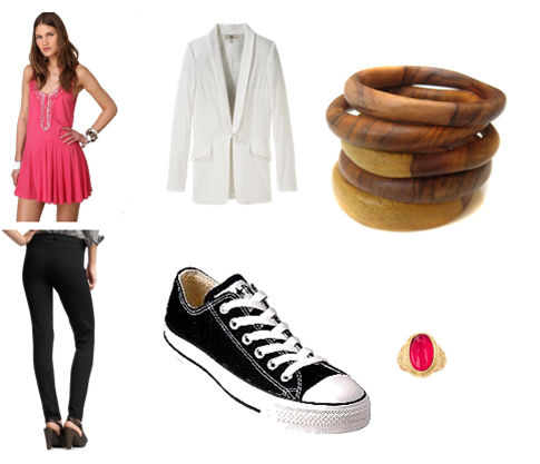 หลายคนจำกัดรองเท้าผ้าใบไว้แค่สวมใส่กับกางเกงยีนส์ แต่ลองทริคแต่งตัวให้เปรี้ยวสุดๆ กับรองเท้าผ้าใบ โดยเปลี่ยนจากยีนส์หนาหนักมาเป็นเลกกิ้งหรือถุงน่องเต็มตัวสีดำ กับเบลเซอร์ชายยาวพอคลุมช่วงสะโพก หรือเดรสสีสดใส ตกแต่งนิดหน่อยด้วยจิวเวลรี่ชิ้นใหญ่ๆ เด่นๆ สักชิ้น ...อย่าเพิ่งเชื่อถ้าใครบอกว่ารองเท้าผ้าใบจะเปรี้ยวจี๊ดหญิงจ๋าไม่ได้