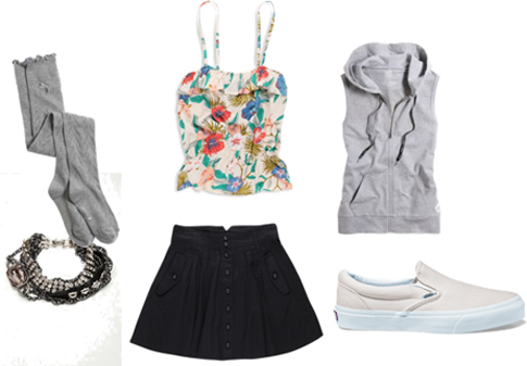 ไม่ต้องกลัวว่าสวมรองเท้าสเก็ตออกจากบ้านแล้วใครจะมองว่าเป็นสก๊อย แค่รู้จักแมทช์นิดหน่อยก็เปรี้ยวได้ มินิสเกิร์ตอัดจีบกับสายเดี่ยวแต่งระบายพิมพ์ลายหวานๆ หรือจะมั่นไปเลยด้วยแขนกุดมีฮู้ดแบบสปอร์ตเกิร์ล กับถุงเท้ายาวสีพื้นๆ ก็ได้ทั้งหวานทั้งเท่แบบทูอินวัน