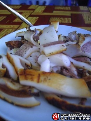 เอาล่ะ เมนูสุดท้ายสำหรับวันนี้ อันนี้พลาดได้ยากค่ะ กรุบๆ หนุบๆ คล้ายๆ กินหนังยาง แต่ อู้ย.. พูดแล้วน้ำลายไหลนะคะ