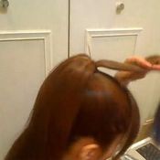 ขั้นตอนที่ 1 ให้มัดผมเป็นแบบหางม้า สำหรับแบ่งเป็น 2 ส่วน โดยส่วนแรกแบ่งมาเพียงเล็กน้อย โดยแบ่งจากบริเวณด้านหน้า แล้วติดกิ๊บไว้ก่อนค่ะ ดังภาพนะค่ะ