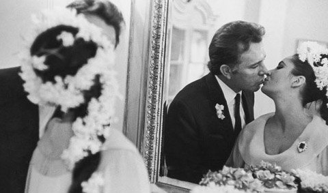 5. ริชาร์ด เบอร์ตัน (Richard Burton) เป็นนักแสดงเชื้อสายเวลส์ชื่อดังคนหนึ่ง ทั้งคู่พบรักซึ่งกันและกันในระหว่างที่ต่างฝ่ายต่างก็มีคู่ครอง จึงหย่ากับคู่ครองเก่าเพื่อมาแต่งงานกันในปี ค.ศ. 1964 แต่ก็หย่ากันในปี ค.ศ. 1974 และ 16 เดือนผ่านไป ในปี ค.ศ. 1975 ลมพัดหวนกลับมาให้ทั้งคู่คืนดีกันจนแต่งงานอีกเป็นรอบที่ 2 พวกเขาเคยรับบุตรบุญธรรมเป็นเด็กหญิงชาวเยอรมันอายุ 3 ขวบมาเลี้ยงชื่อว่ามาเรีย พวกเขาหย่ากันในปี ค.ศ. 1976 เชื่อกันว่าริชาร์ด เบอร์ตัน เป็นคนที่เธอรักมากที่สุด และตอนที่เขาเสียชีวิตก็ทำให้เธอตกใจมาก